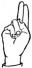 На ћирилици написано СИМОНА РУЧНОВ састоји се из 12 слова [?]. Исписано ћириличном једноручном азбуком за глувонеме: